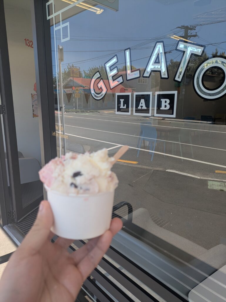 Next is The Gelato Lab, an ice cream shop offering around 20 different flavors. I chose Amarena and raspberry—both berry-flavored, recommended by the staff. To be honest, I wanted to try chocolate, but I went with their suggestion.