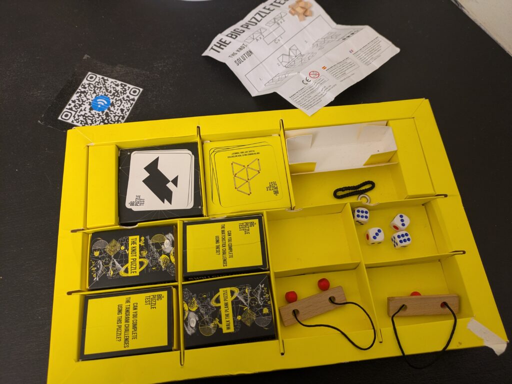 We applied for a reception and was waiting for a while. We had to wait because previous people did the escape room and assistants needed to prepare. I played puzzles and puzzle rings while waiting. Therefore, I wasn’t bored while waiting.